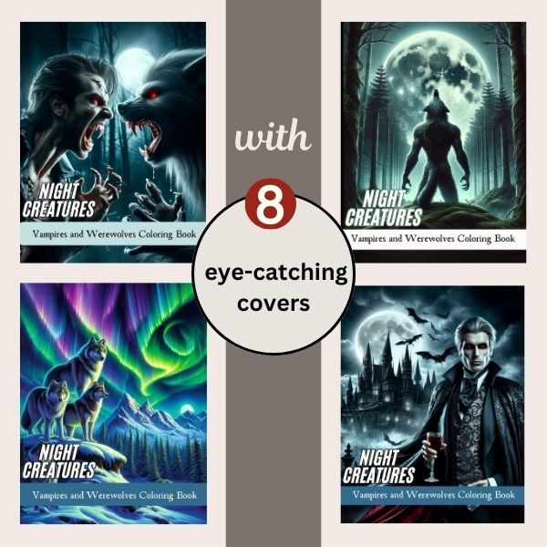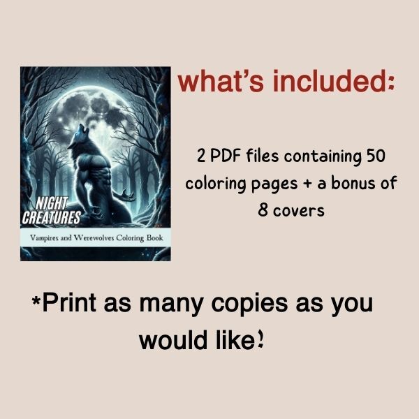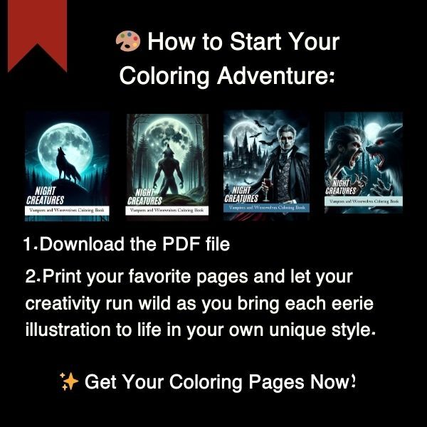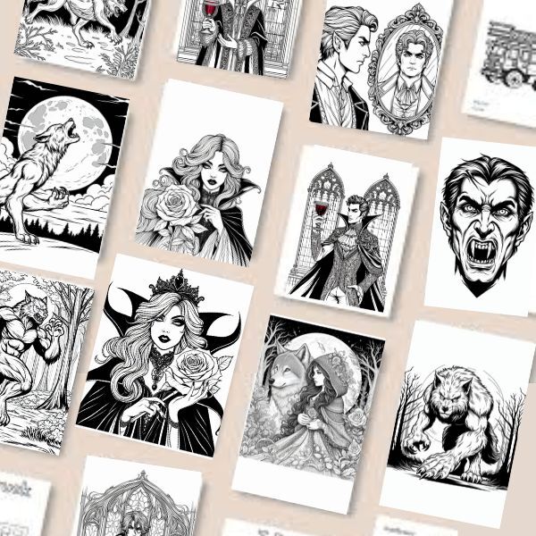 Dive into a world where darkness meets creativity! Whether you're a lover of fantasy, gothic art, or just need a creative escape, this Vampires & Werewolves Coloring Book will pull you into a spine-chilling adventure. Each intricately designed page is crafted to immerse you in the world of bloodthirsty vampires, fierce werewolves, and eerie castles, where every line waits for your touch of creativity. Whether it's stress relief, creative expression, or indulging your supernatural fantasies, this book will captivate your imagination and transport you to another realm.