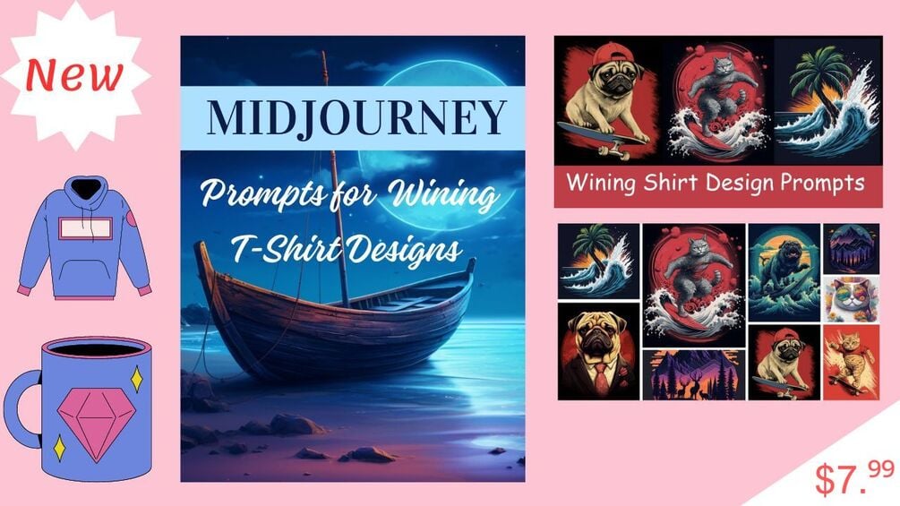 ✅ Cost-Effective: Hiring a professional graphic designer can be expensive, especially for small businesses and individuals. Our midjourney prompts offer an affordable and cost-effective solution for creating professional-looking designs for your t-shirts and stickers. You can save money while still producing high-quality designs that will help you increase your sales.